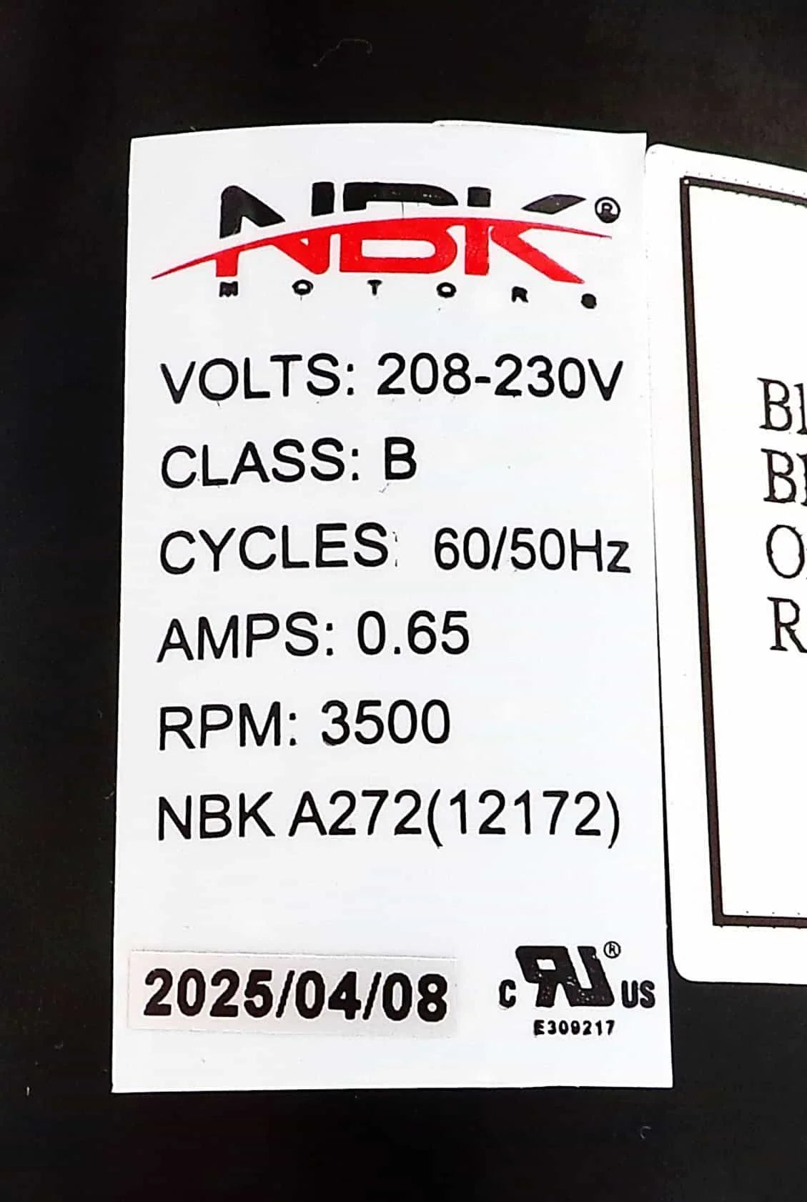 NBK-12172 – Blower Motor 208–230V A272 – NBK