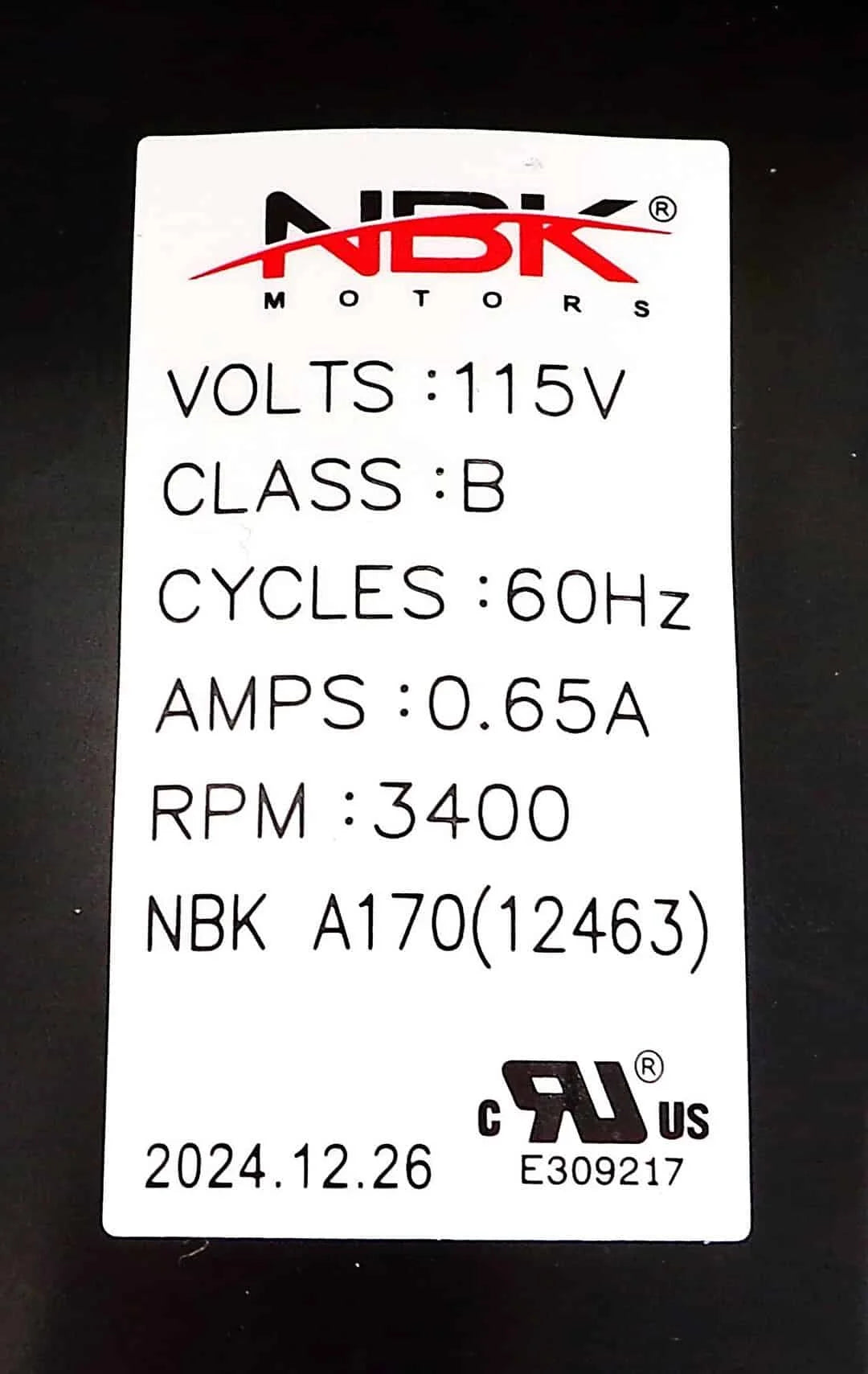 NBK-12463 – Draft Inducer Blower Motor 115V A170 – NBK