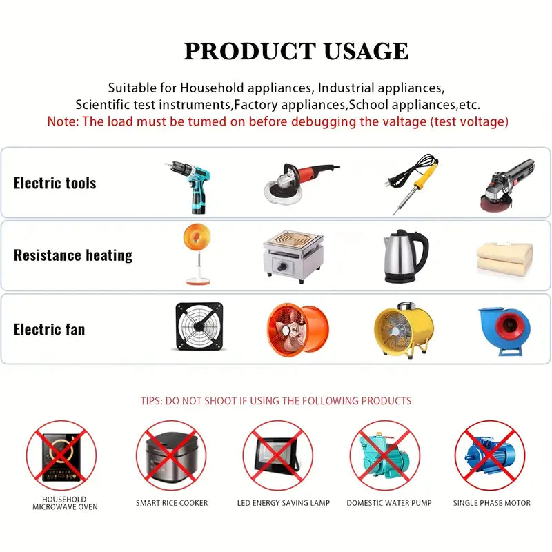 Built for reliability and precision, this high-power voltage regulator delivers superior performance for home and workshop applications. The integrated LED display and overload protection provide both safety and control, ensuring optimal power output at all times. Whether you’re tuning fan speeds or adjusting filament brightness, this compact, portable motor governor delivers professional-grade results. Order yours today and experience smooth, efficient voltage regulation!