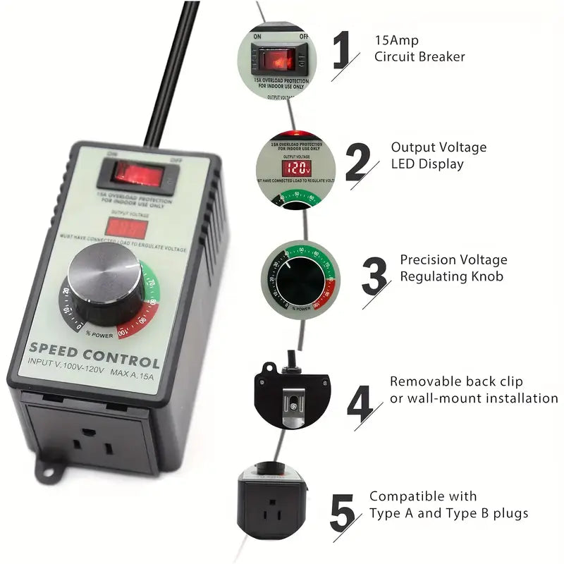 • Versatile Use – Perfect for exhaust fans, tungsten filaments, and portable motor control